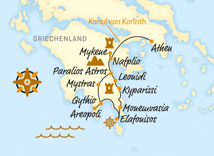 Heureka! Sie möchten einen kaum bekannten Teil Griechenlands entdecken, das ursprüngliche Hellas zwischen archaischen Bräuchen und herzlicher Gastfreundschaft erleben, mit allen Sinnen den Zauber der Ägäis spüren? Dann gibt es keinen besseren Ort als die abgeschiedene und magische Welt der südgriechischen Halbinsel Peloponnes. Per E-Bike entdecken Sie an 9 Tagen die peloponnesische Ostküste, antike Stätten, die duftenden Orangen- und Zitronenhaine Arkadiens und die malerischen Ägäis-Panoramen besonders unmittelbar. Wenn Sie auf zwei Rädern auch noch den Geheimnissen der Märcheninsel Elafonisos und der wilden Halbinsel Mani auf die Spur kommen, machen Sie den Peloponnes zu Ihrem persönlichen Veloponnes.