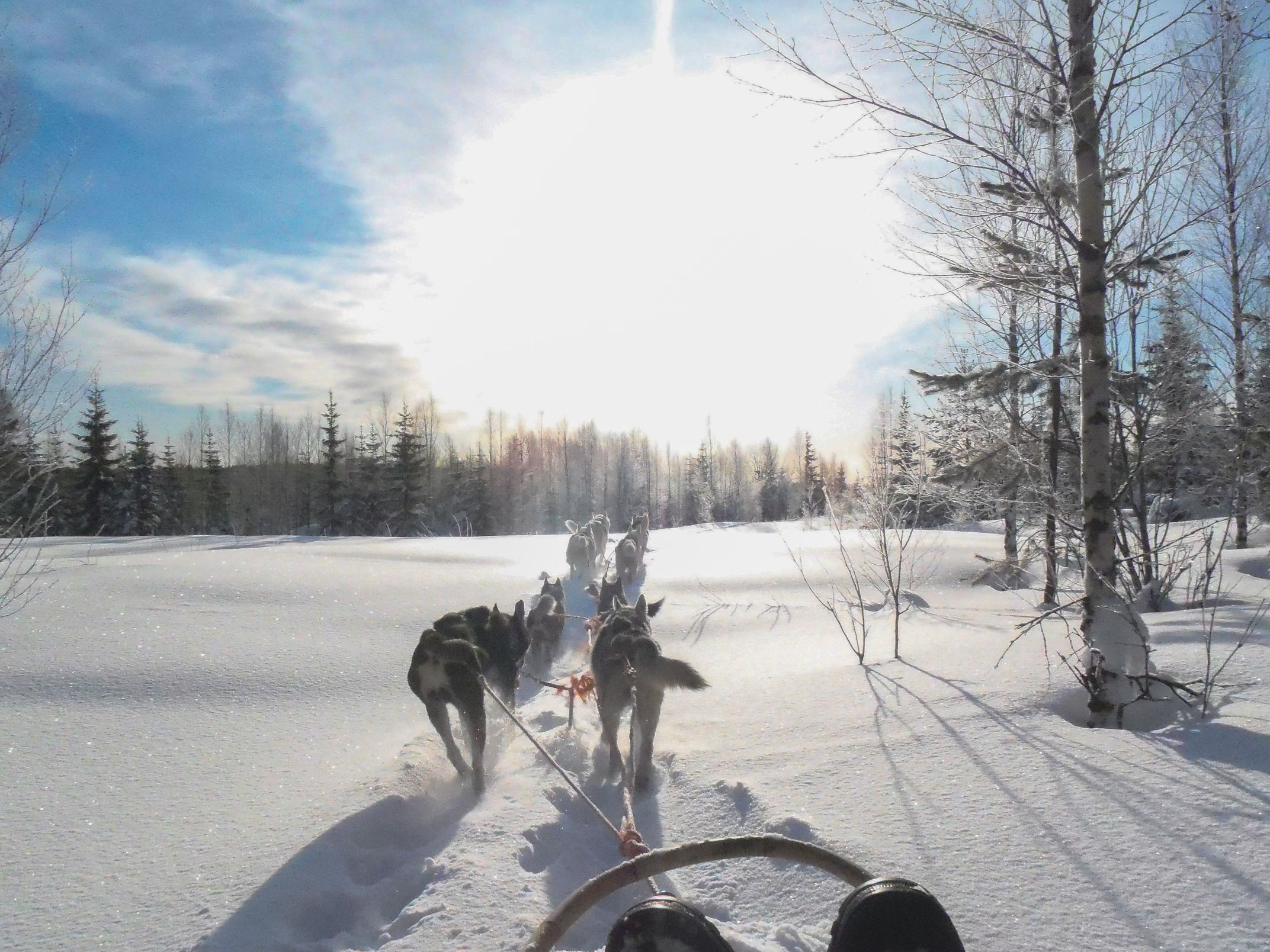 Zusätzlich haben Sie die Gelegenheit, an einer Husky-Hundeschlittenfahrt teilzunehmen (Zusatzkosten. Bitte mit der Buchung reservieren - begrenzte Platzanzahl!).