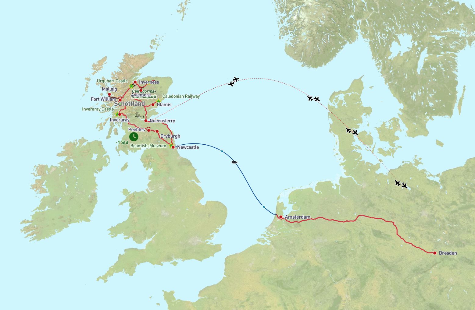 - Fährüberfahrten Amsterdam - Newcastle - Amsterdam