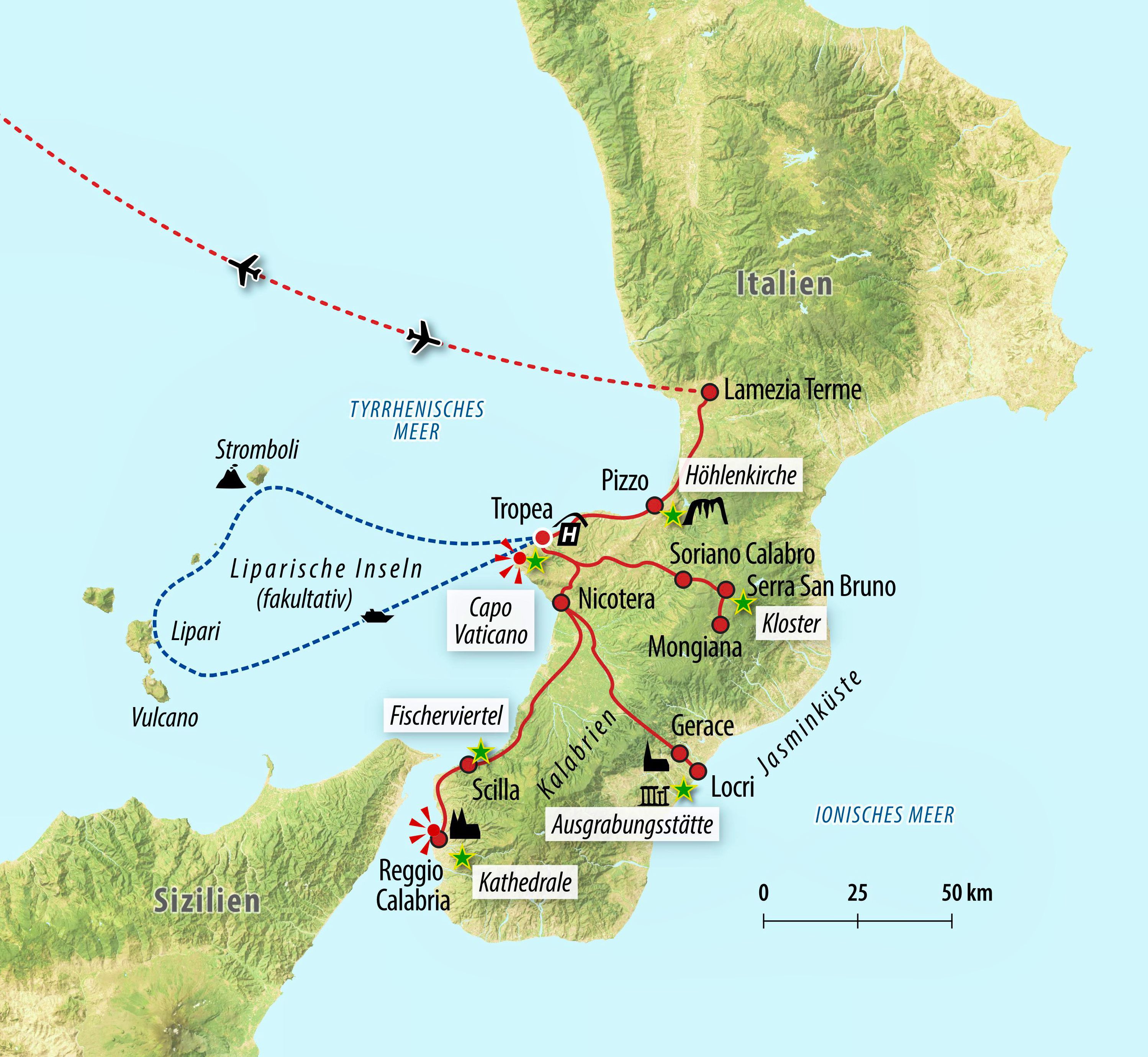 8 Tage Flugreise Kalabrien mit Tropea – Capo Vaticano – Nicotera – Pizzo – Reggio Calabria – Scilla – Serra San Bruno – Locri – Gerace – fakultativ: Liparische Inseln